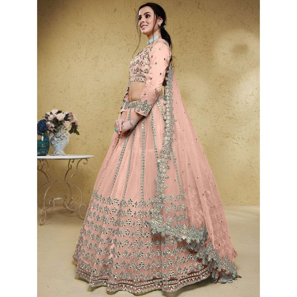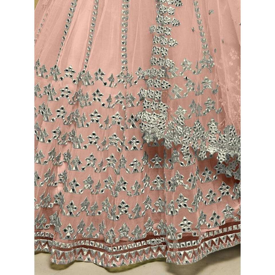 Great Pink Foil Work Net Engagement Wear Semi-Stitched Lehenga Choli with Dupatta and Bridal Headwear by Zeel Clothing