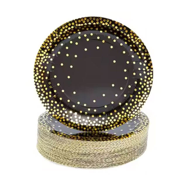 Hot Selling High Quality 7 Inch Disposable Black Gold Style Mixed Colors Round Paper Plates Great Price Modern Design