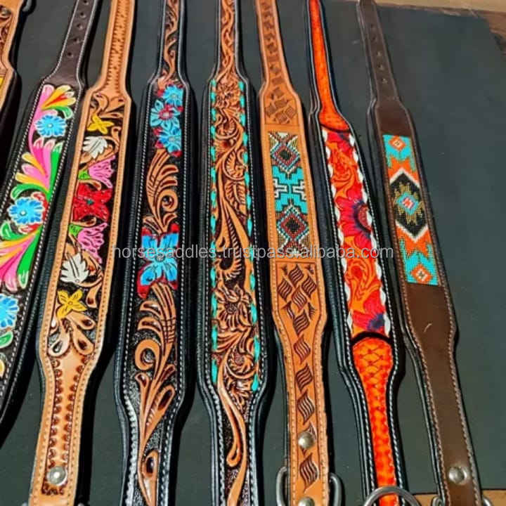 Great Quality Hand Beaded Leather Dog Collar with Soft Padding Stylish and Comfortable