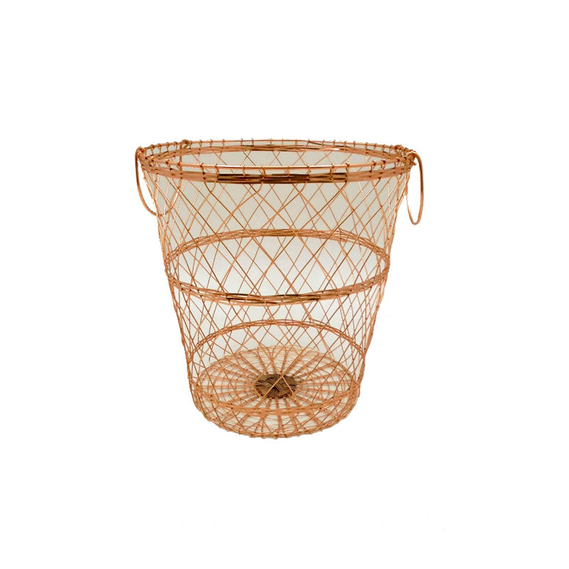 Great Quality Home Decorative Iron Wire Fruits Baskets With Handle Round Shape Golden Finished Large Tabletop Storage Basket