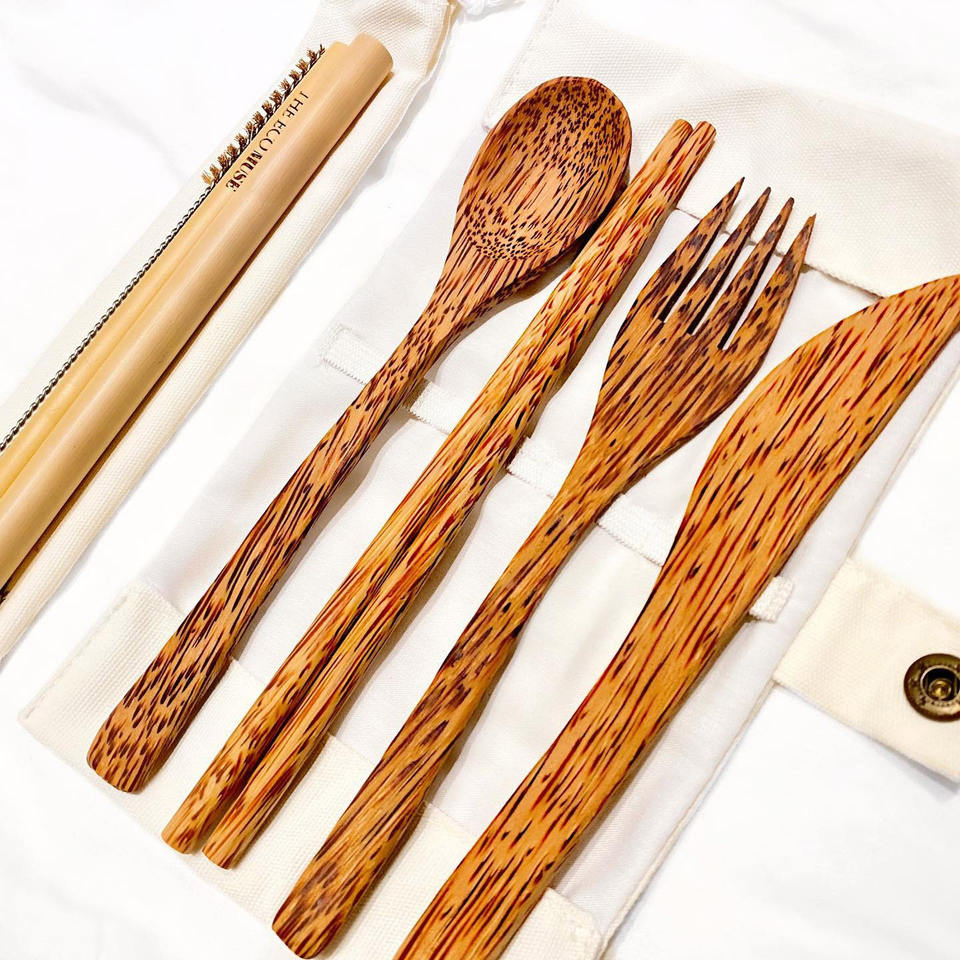 Great quality coconut travelling cutlery set low cost coco wood utensils camp utensil sets for travel picnics
