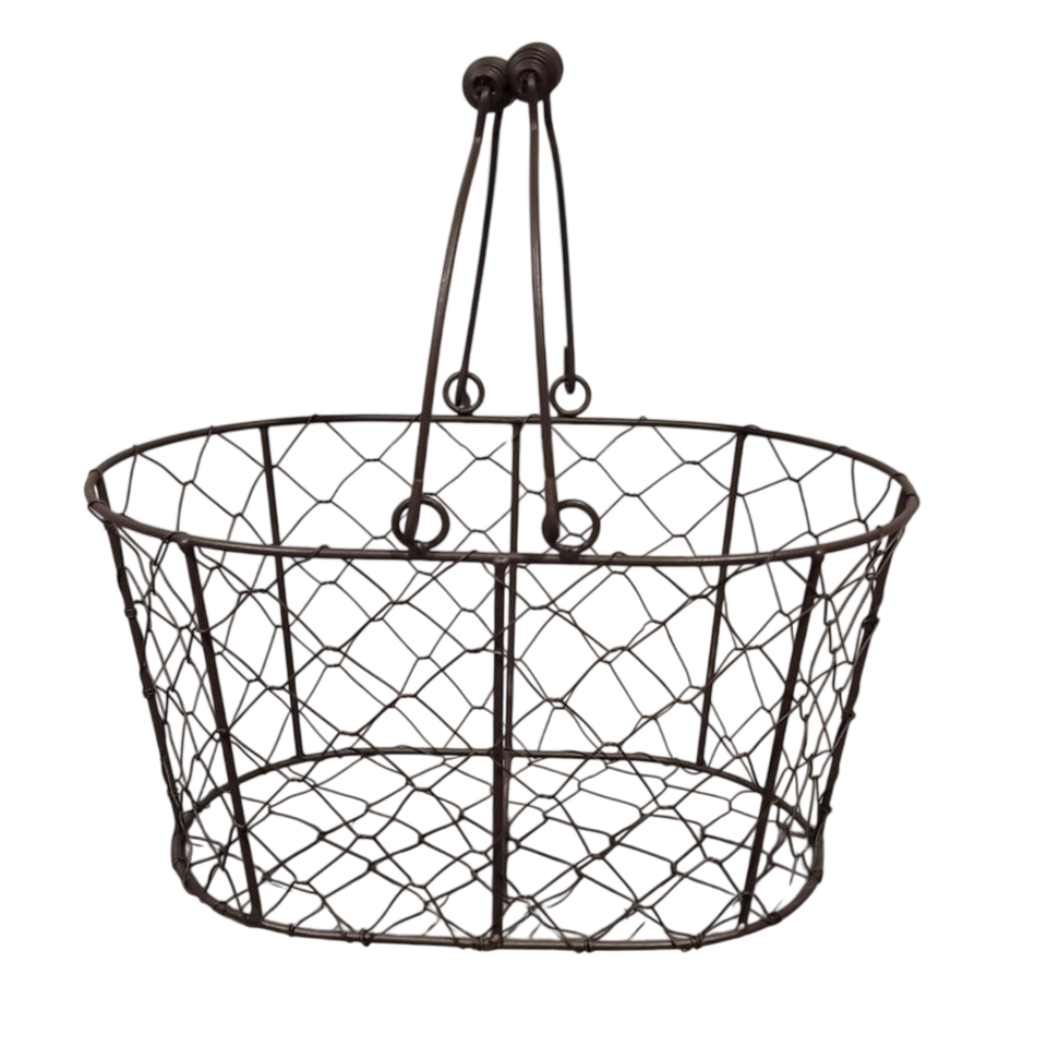 Greatest Quality Brown Metal Chicken Wire Oval Basket With Wooden Grip Handle Iron Wire Storage And Decorative Display On Sale