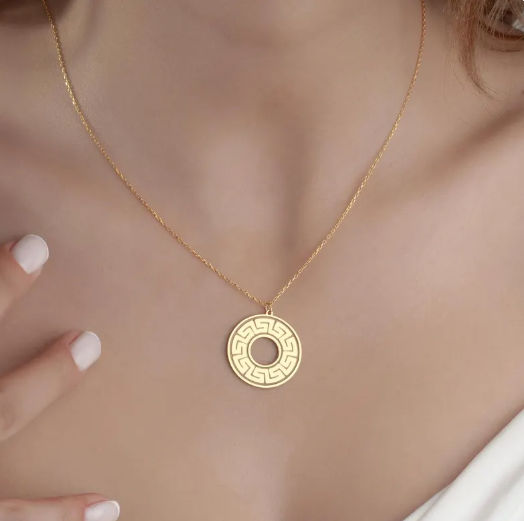Greek Style Necklace Ancient Greek Patterned Jewelry Endless Round Labyrinth Pendant Classical Engraved Necklace High Quality