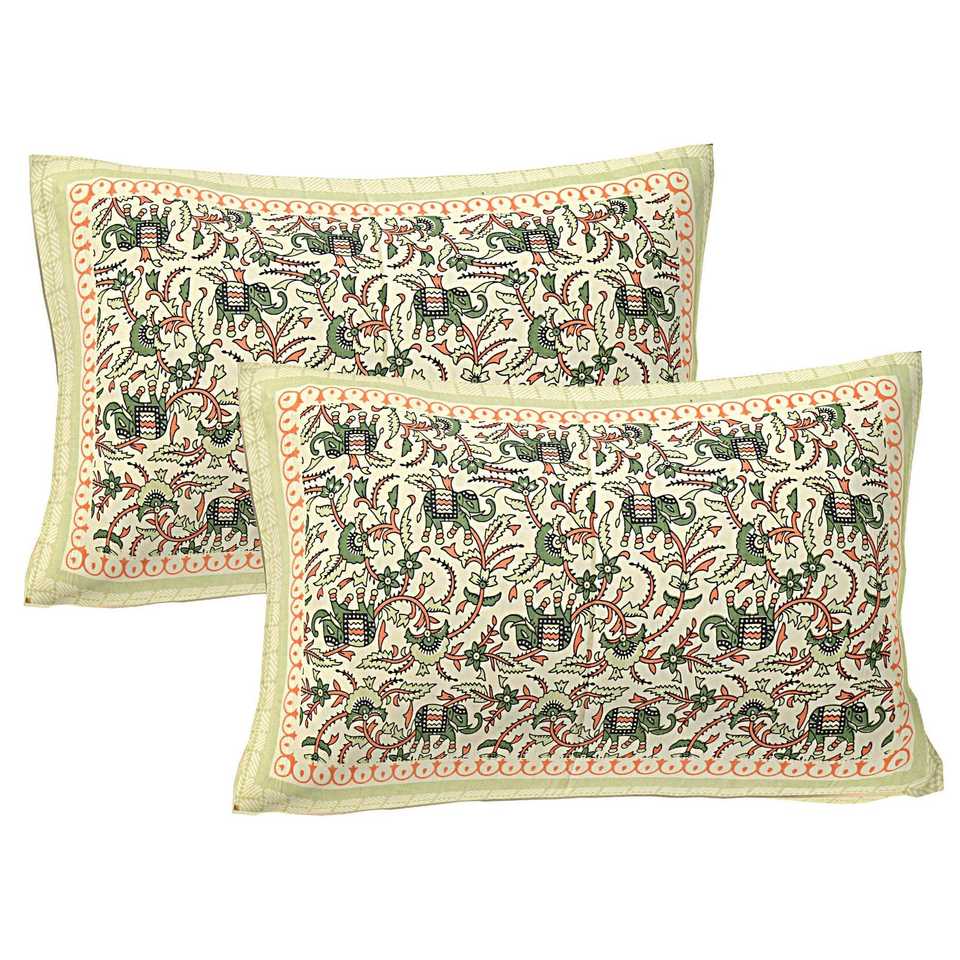 Green 240 TC Cotton 1 King Size Bedsheet with 2 Pillow Covers Ethnic Motifs 4 Piece Set (ADB1481)