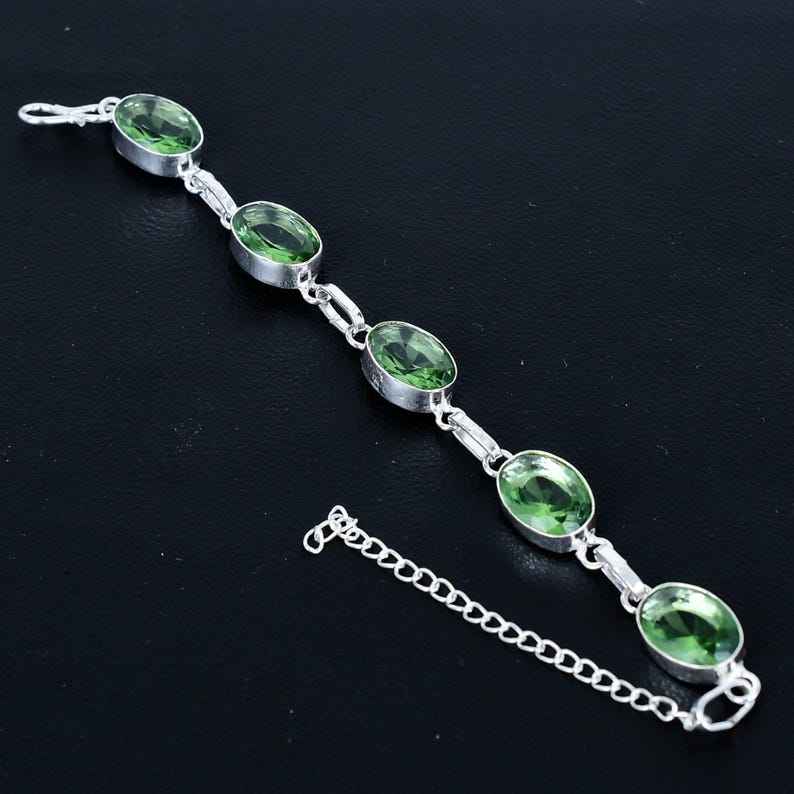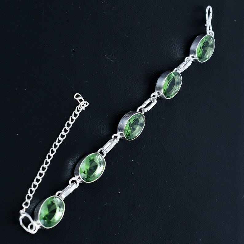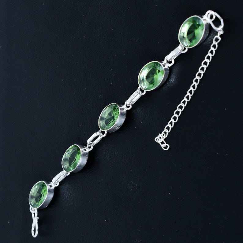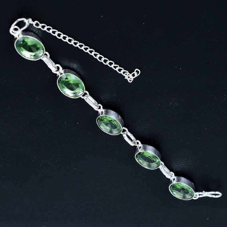 Handmade 925 Silver Adjustable Charm Bracelet with Green Amethyst Gemstone Birthstone Jewelry for Gifts or Parties