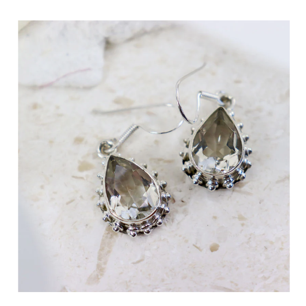 Green Amethyst Gemstone Earring 925 Sterling Silver With Silver Plated Bezel Setting Fashionable Earring For Wedding Gift Party.