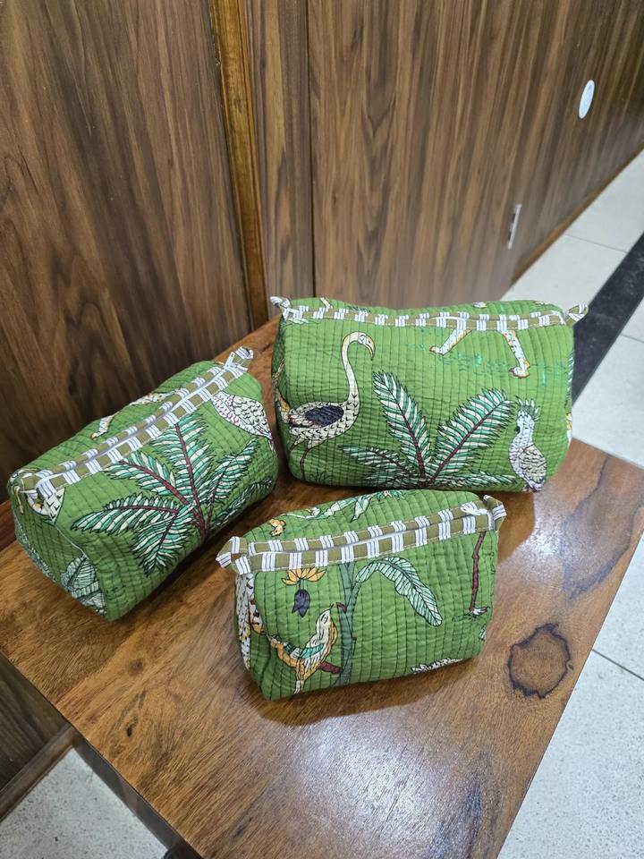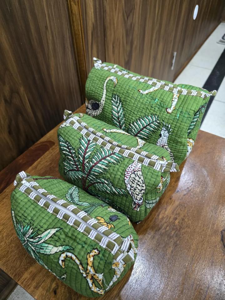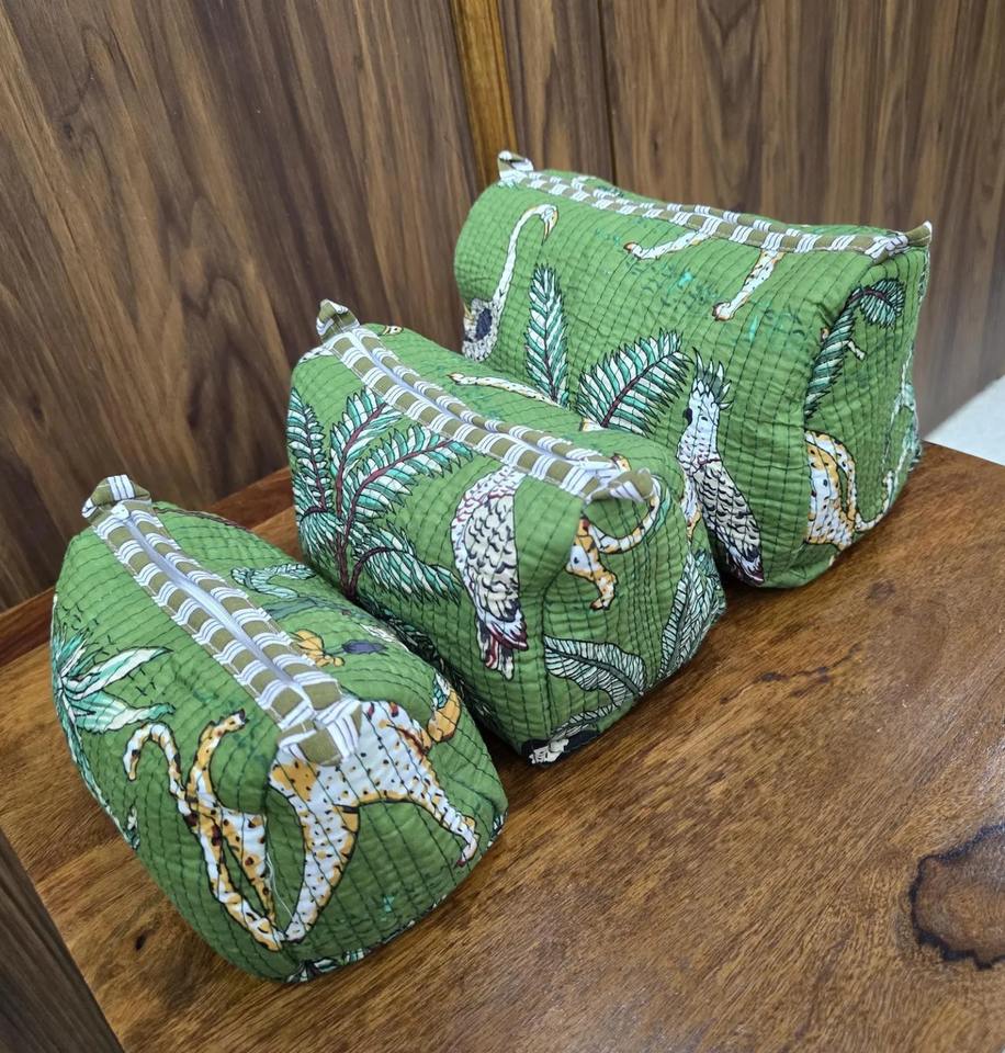Green Animal Print Quilted Zipper Eco-Friendly for Case Set Vintage Style Durable Water Resistant Makeup Storage Small