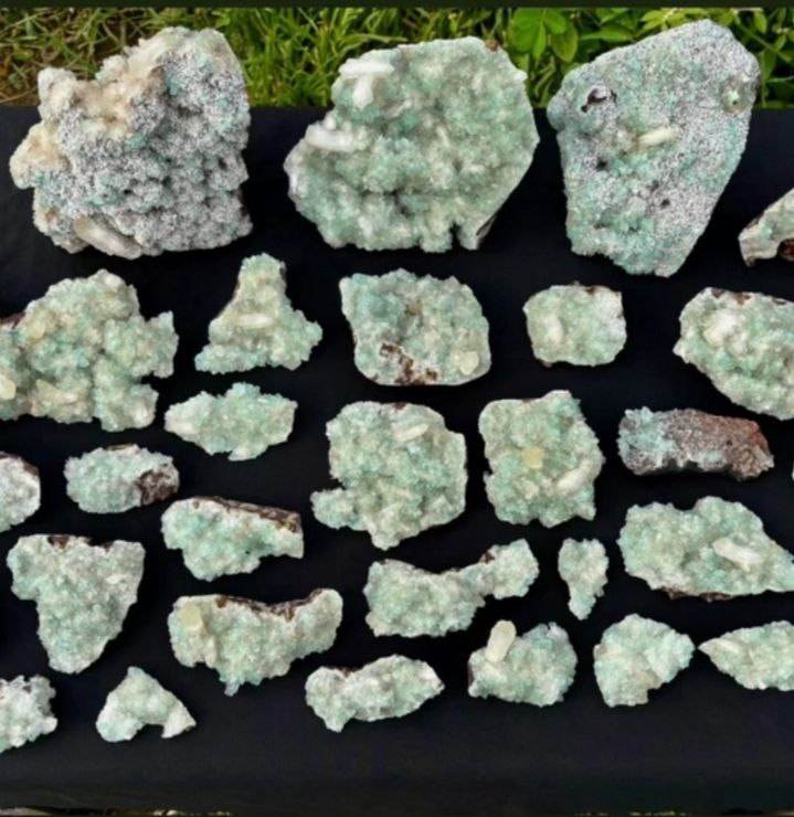 Green Apophyllite With Calsite Cluster Specimen Mineral from India Crystals MAharastra