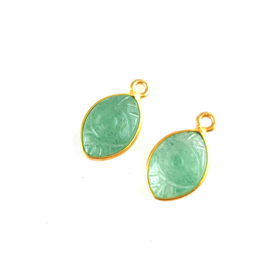 Green Aventurine Gemstone Marquise Pendant Evil Eye Carving 925 Sterling Silver Gold Vermeil Diamond Main Stone Evil Eye Charms