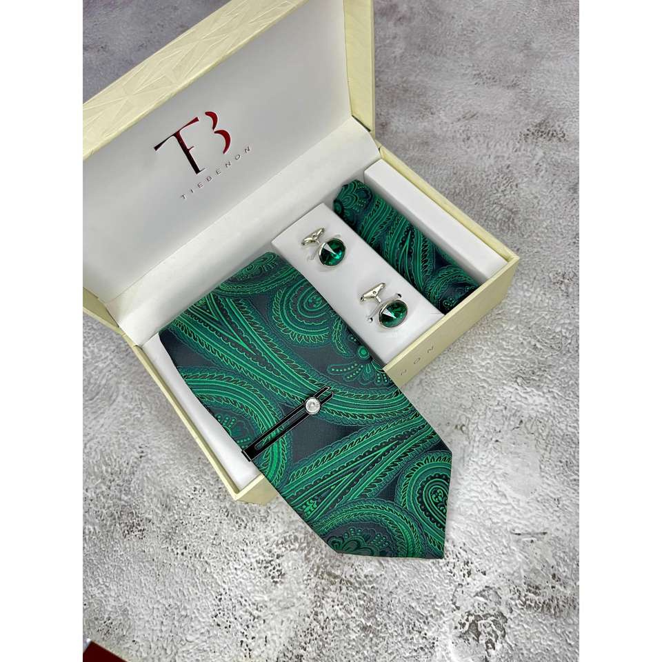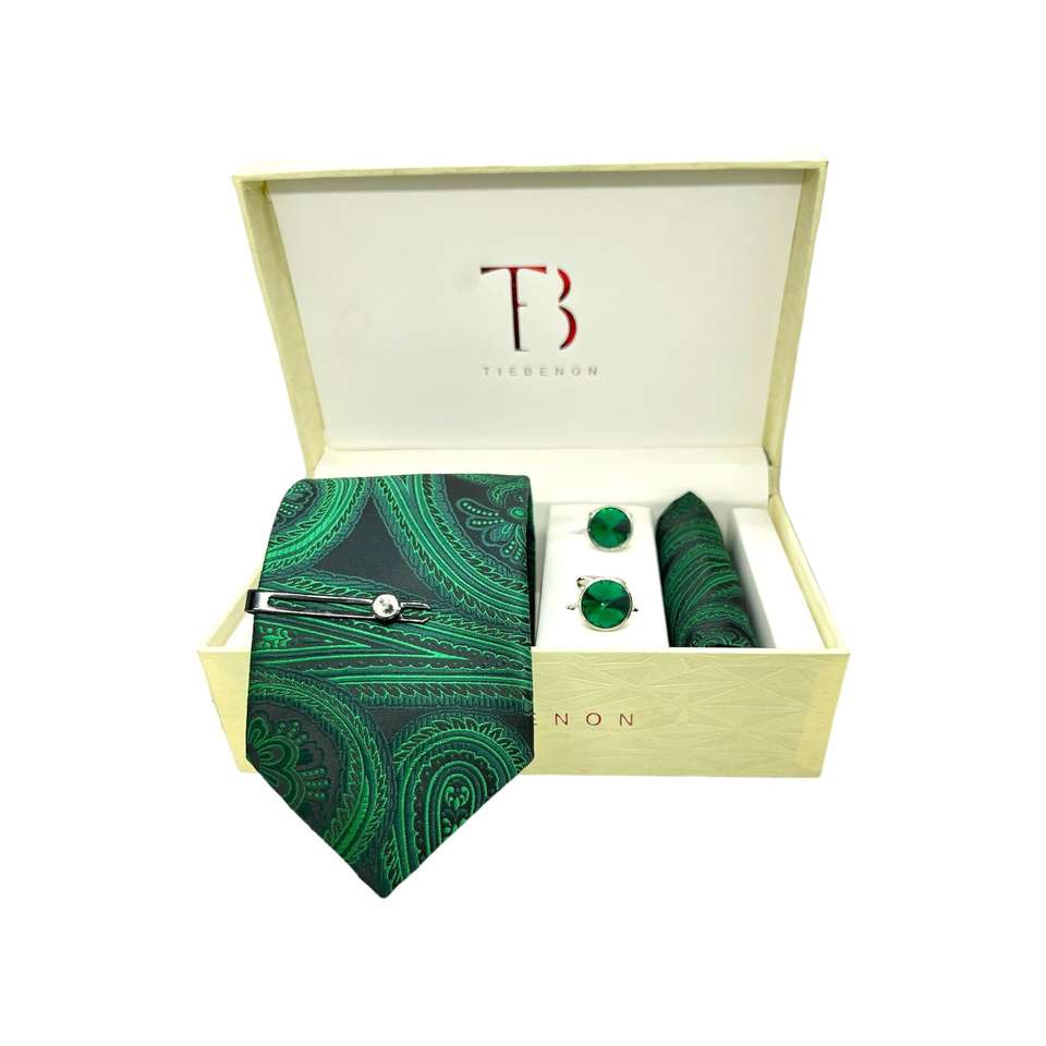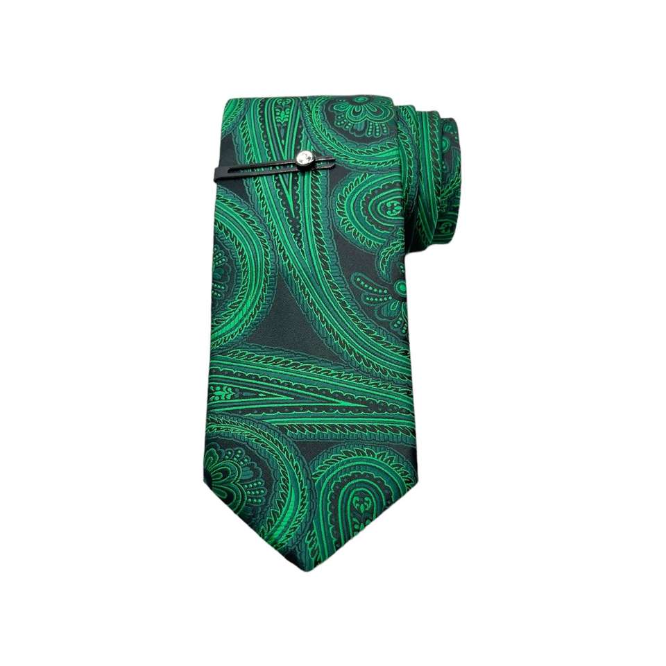 Luxury Microsilk Tie Set Big Size Green Paisley Design Silky Comfort Silk Ties
