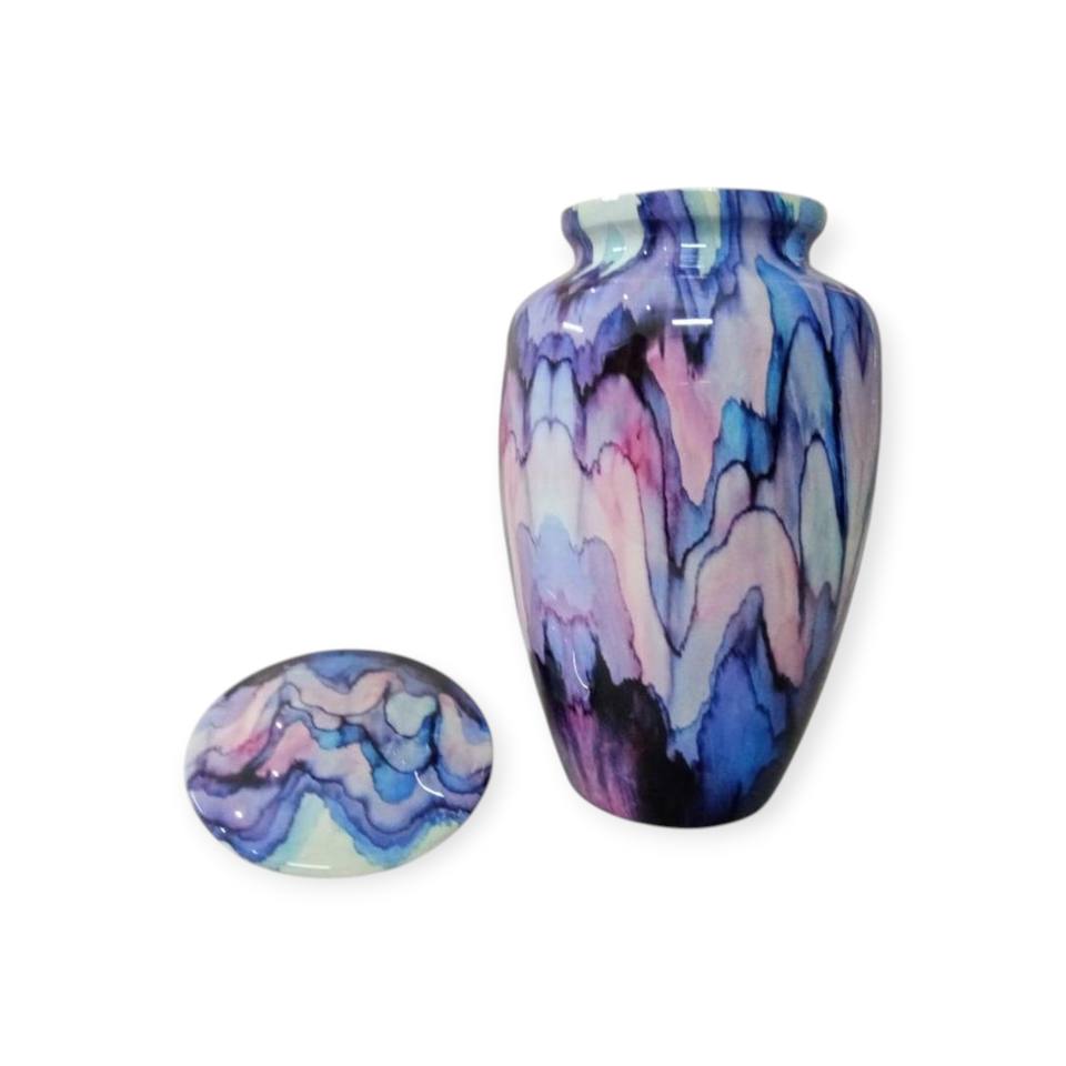 Green Blue Abstract Crackle Finish Cremation Urn with Artistic Marble Effect for Modern Memorial Display