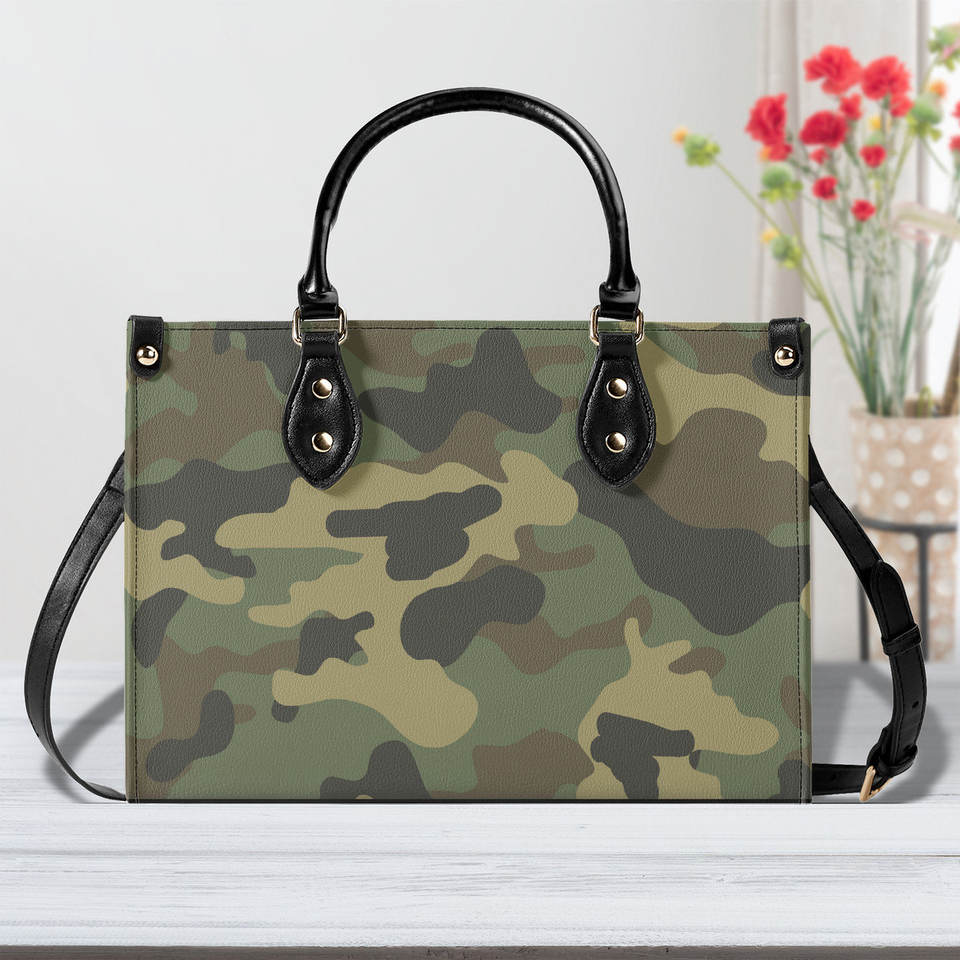 Green Camouflage PU Leather Handbag for Women POD Dropship Elegant Lady Tote Bag