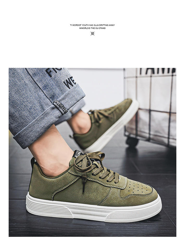 Green Casual Sneakers Low Top Lace-Up Flat Shoes Comfortable Daily Wear Fashion Men's Footwear
