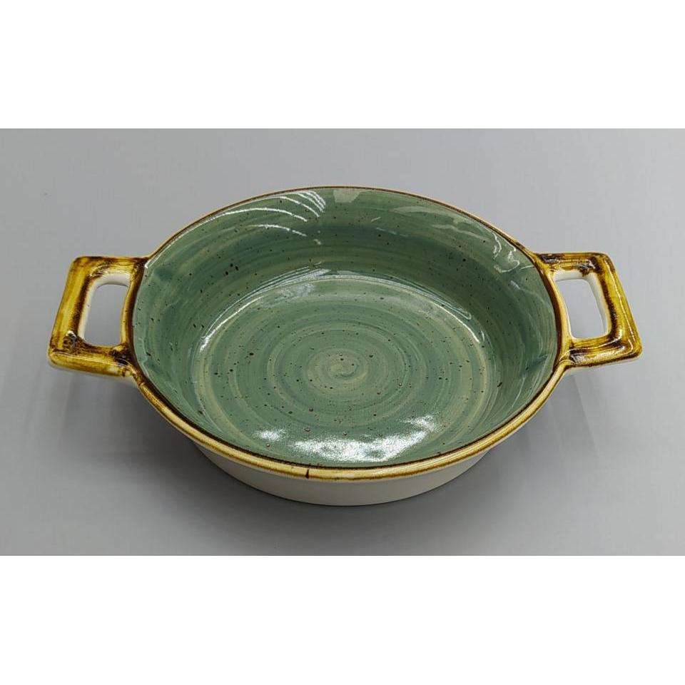 Green Ceramic Baking Dish with Double Handle Ovenware Kitchen Cooking Bakeware Heat Resistant Tableware for Pizza and Cake