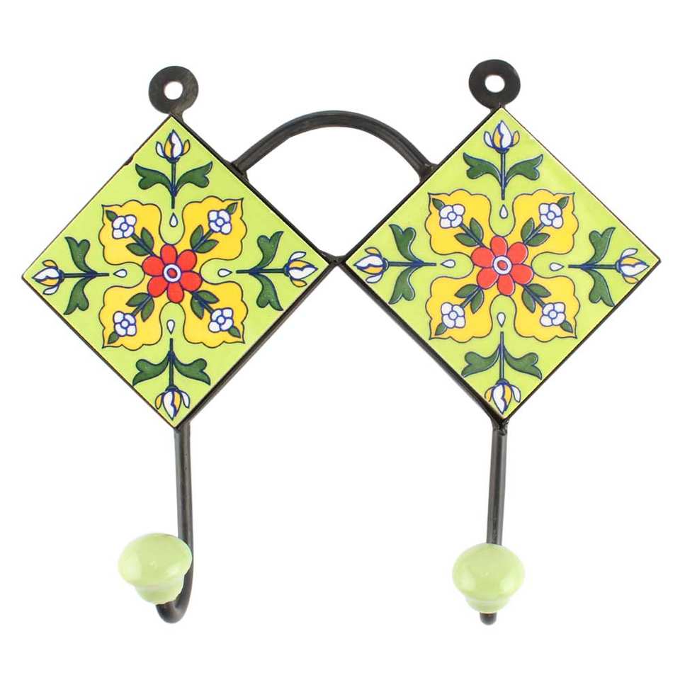 Green Ceramic Floral Rack Kids Clothes Hooks Boho Holders Boho Hangers Durable Indian Craft