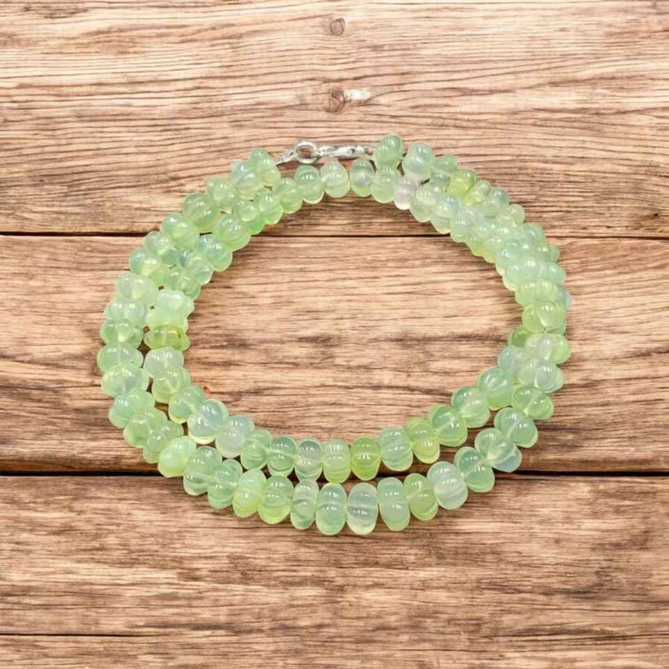 Green Chalcedony Carved Melon Beads Necklace 7-8mm Natural Stone Strand for Women Soft Glow Gem Jewelry 2025 Trending Look