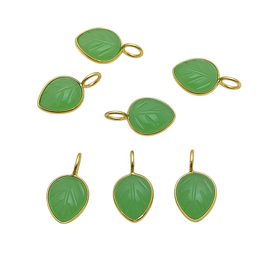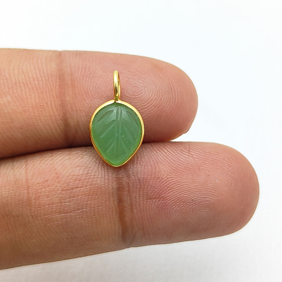 Green Chalcedony Gemstone Leaf Carving Gold Plated Bezel Charm Pendant for Wholesale