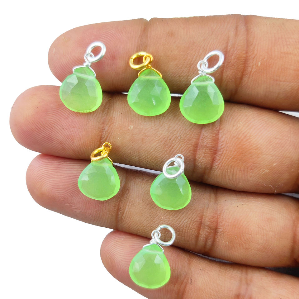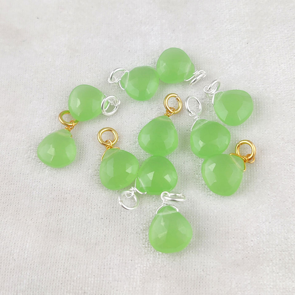 925 Sterling Silver Green Chalcedony Briolette Gemstone 10mm Pendant Wire Wrapped Heart Shape Necklace Earring Making Accessory