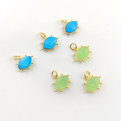 Green Chalcedony Marquise Shape Pendant Evil Eye Fancy Bezel Natural Stone Carving Necklace Charm for Jewelry Making Distributor