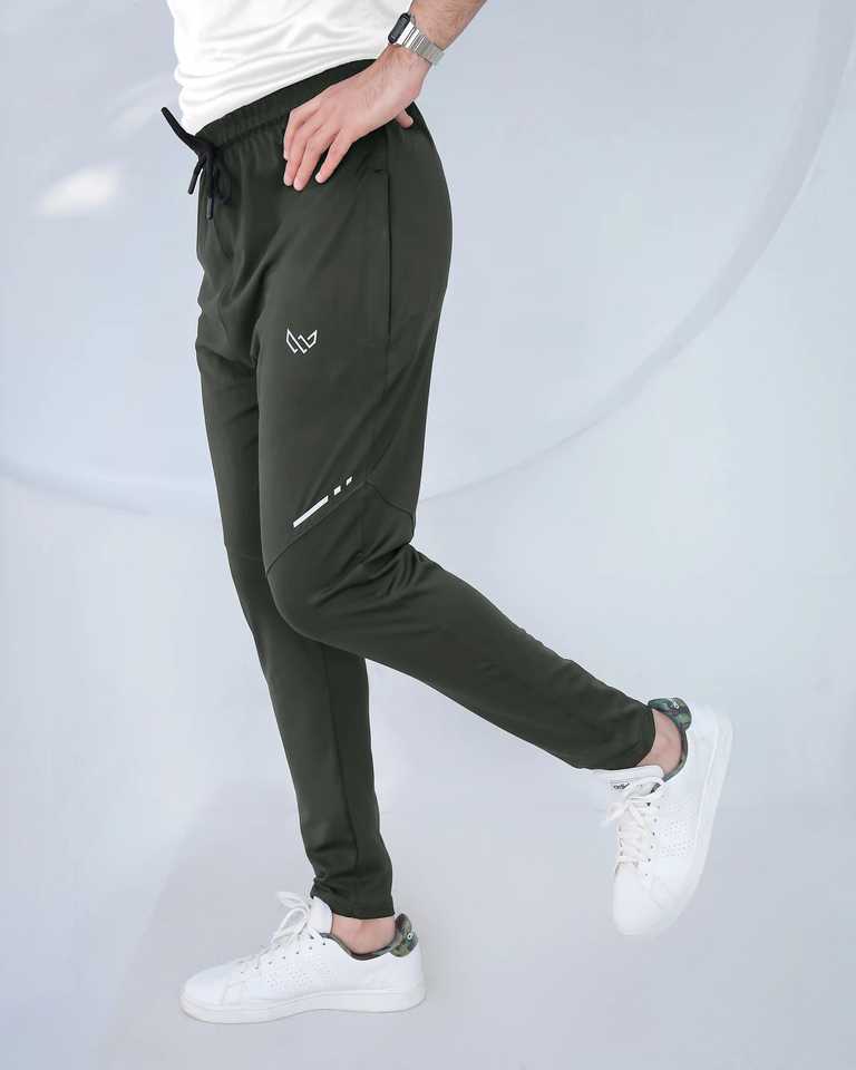 Green Color Casual Straight Stretchable Spring Running Track Gym Jogger Zipper Pocket Breathable Eco-Friendly Lightweight Men's