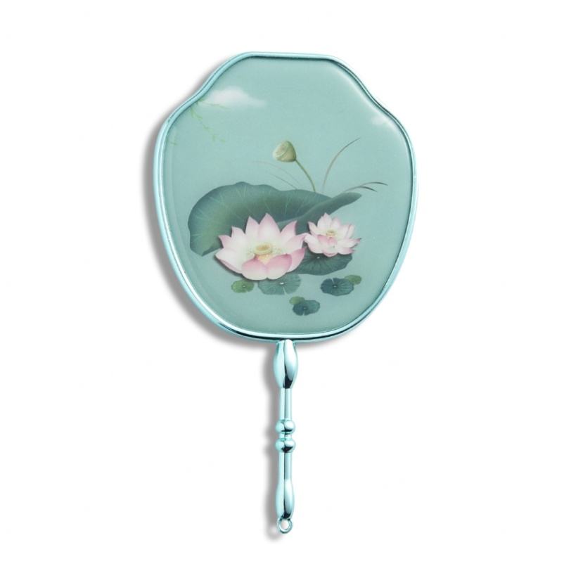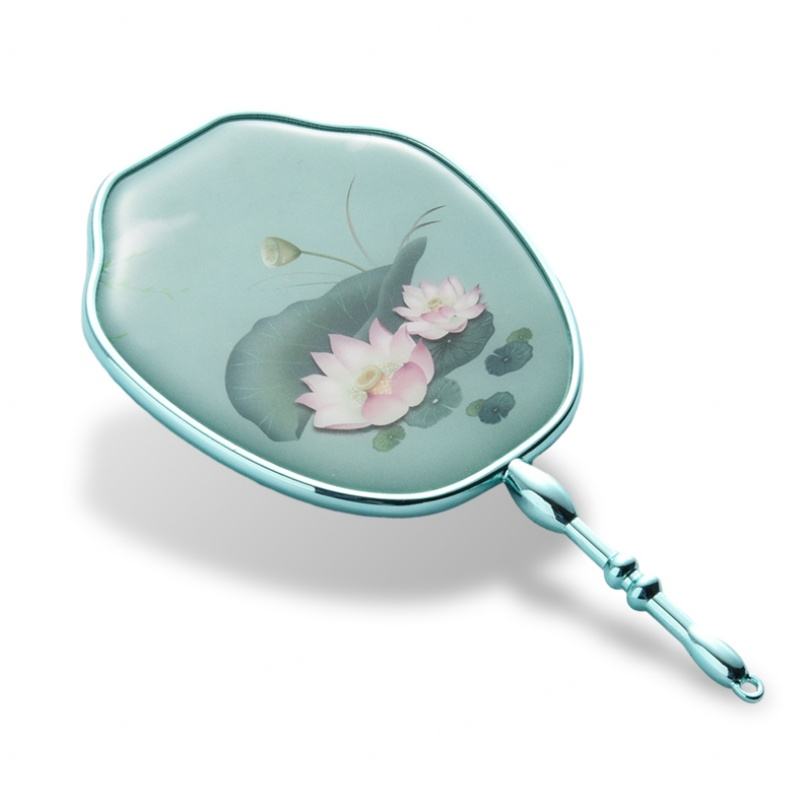Green Color Chinese Style Unique Design Private Label Compact Handheld Mirror for Women