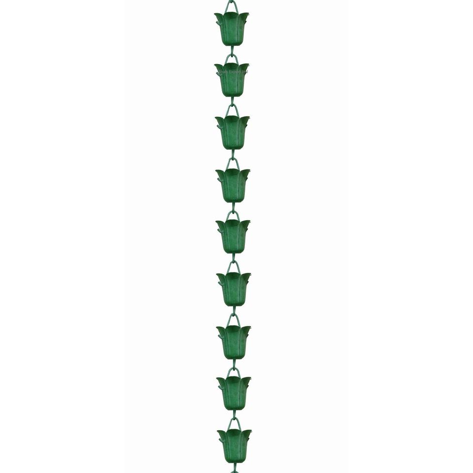 Green Metal Rain Chain Garden Ornaments to Decorate Home Outdoor Rainwater Diverted From Gutter Downspout
