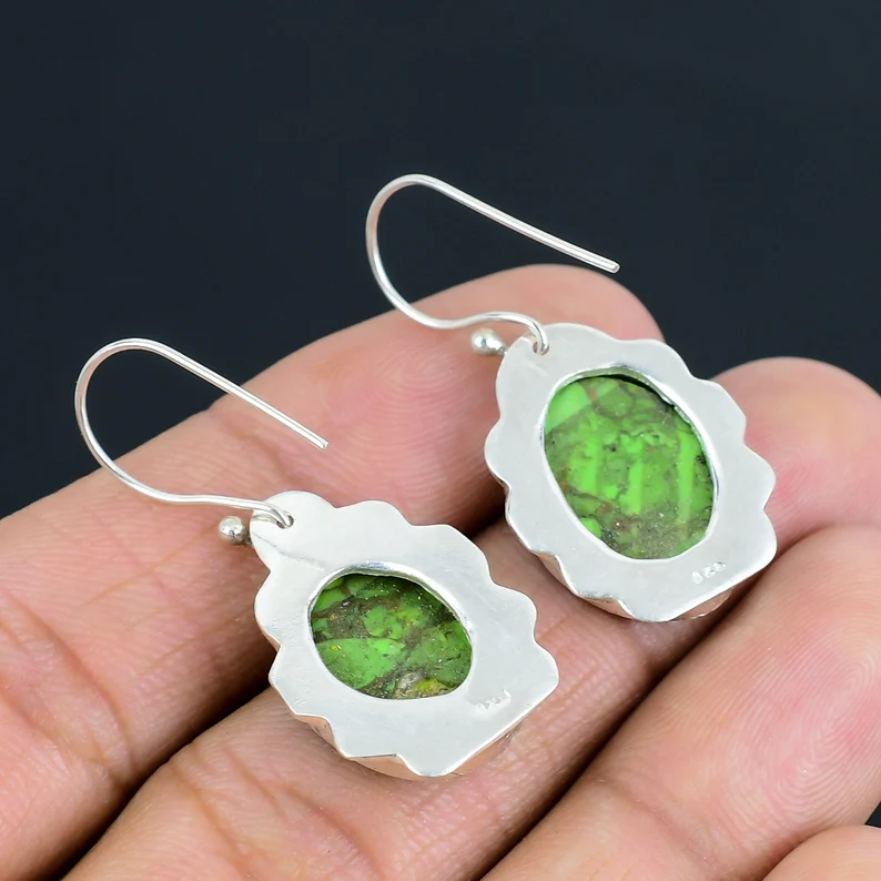 Wholesale 925 Sterling Silver French Wire Green Copper Turquoise Gemstone Dangle Hoop Earrings Perfect Gift for Women and Girls