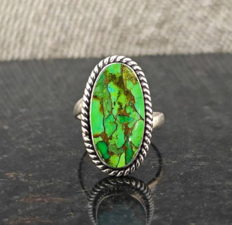 Green Copper Turquoise Ring 925 Sterling Silver Bohemian Gemstone Handmade Jewelry Statement Ring