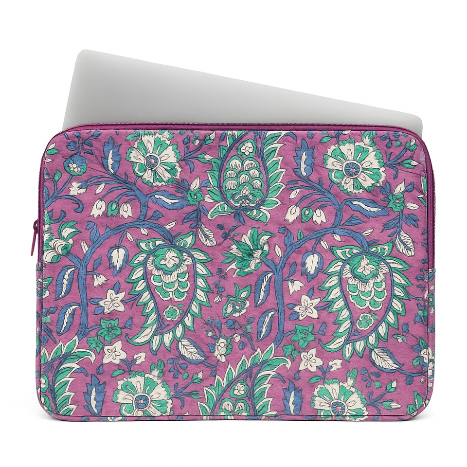 Green Cotton Lightweight Quilted Laptop Sleeve Fashionable Simple Business Style Waterproof Daily Protection Laptop Bags Covers