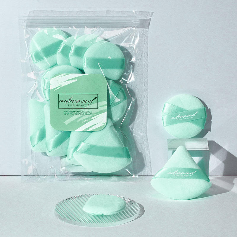 Green Cotton Makeup Powder Puff Set Bulk Wholesale Puff Low MOQ Logo Printing for Retail
