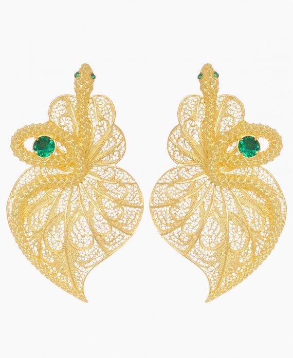 Green Cz Designer Snake On Leaf Green Gemstone 925 Sterling Silver Earring Gold Plated Silver Earring