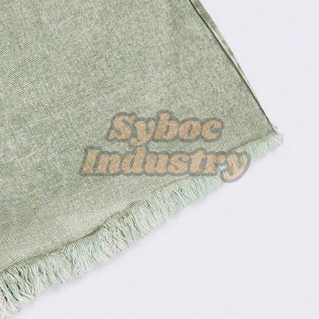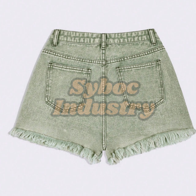 Green Denim Tear Shorts For Women Distressed Acid Wash Style Stretch Jeans Summer Tear Shorts For Beach Outfit