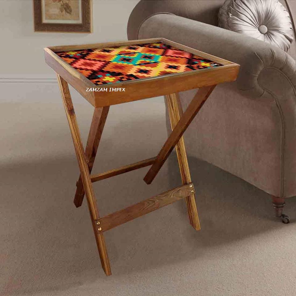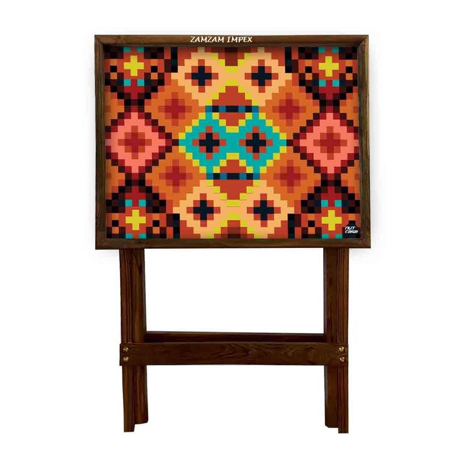 Green Diamond Printed Mango Wood Folding Snack Sofa Table Convertible Side Corner Stand Space-Saving Wooden Boxes Wall Signs