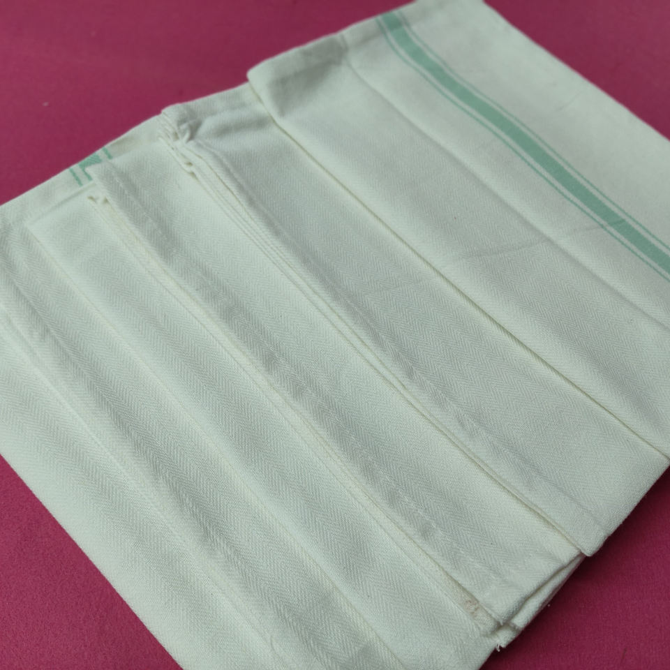 Green Edged White Cotton Kitchen Towel Soft 100% Absorbent Fabric Lightweight Utility Cloth Quick Dry Durable Daily Use
