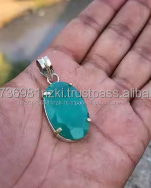 Green Emerald Quartz 925 Sterling Silver Gemstone Pendant Jewelry Handmade Jewelry May Birthstone Oval Shape Gift For Christmas