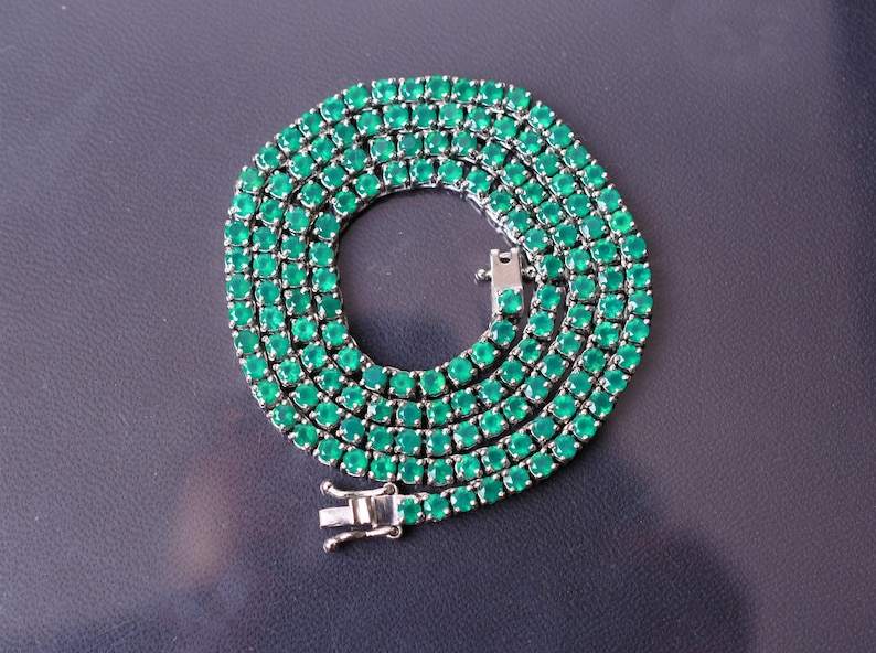 Green Emerald Round Cut Tennis Necklace Elegant Crystal Jewelry for Women's Anniversary Birthday Gift