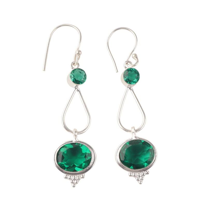 Handmade 925 Sterling Silver Drop Earrings Green Emerald Gemstone Heart Shaped Jewelry Women's Wedding Gift