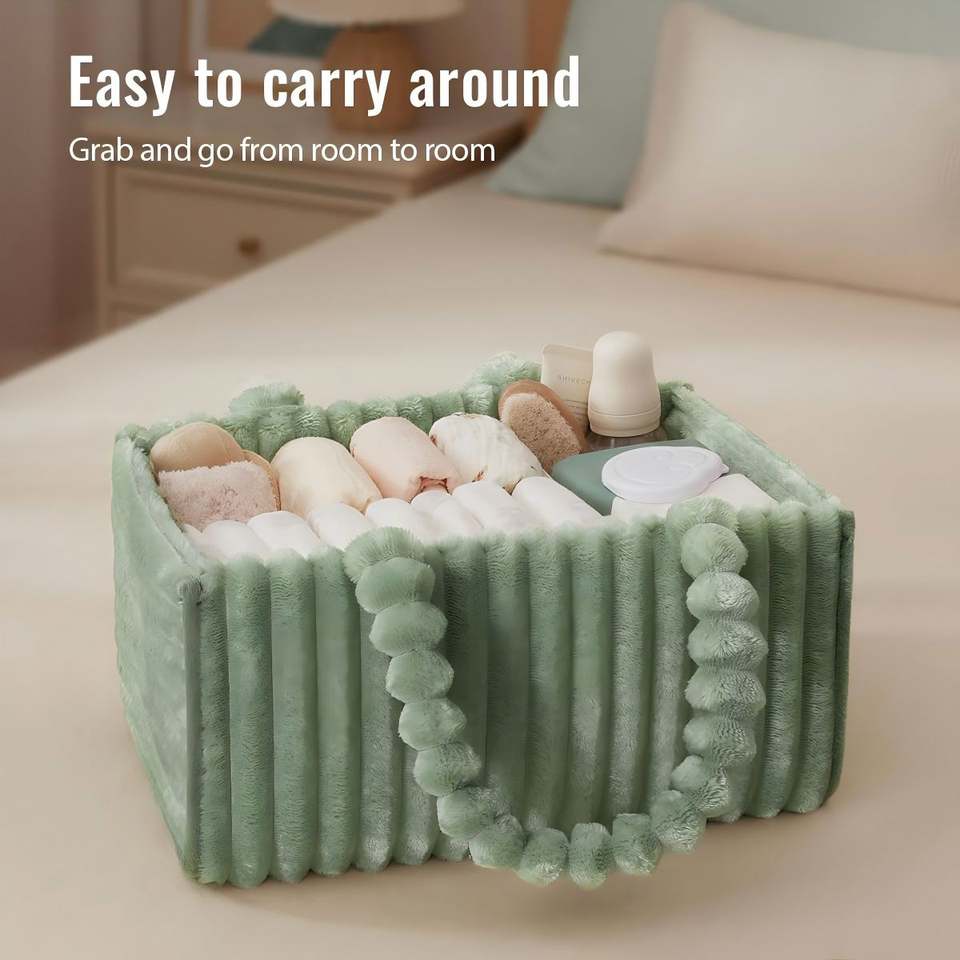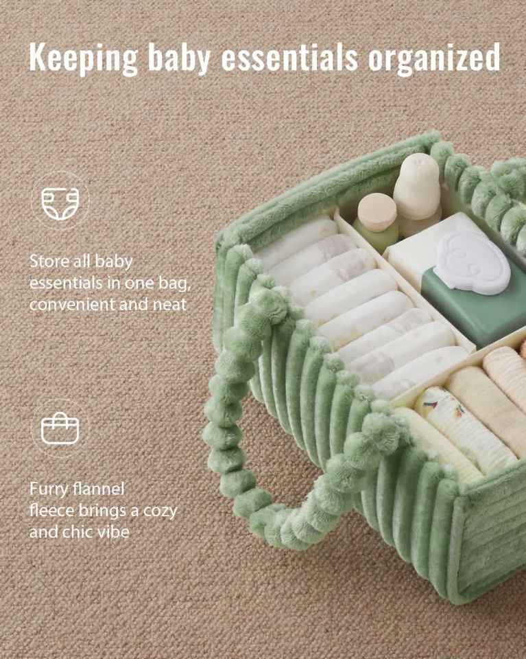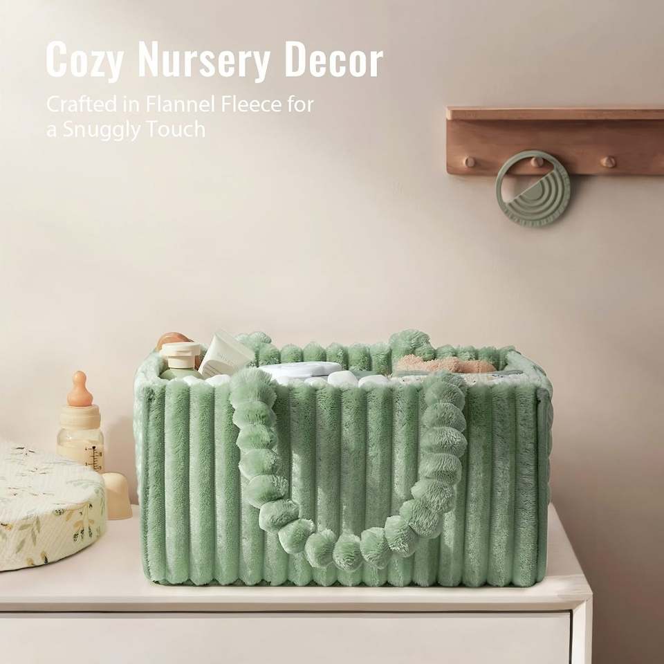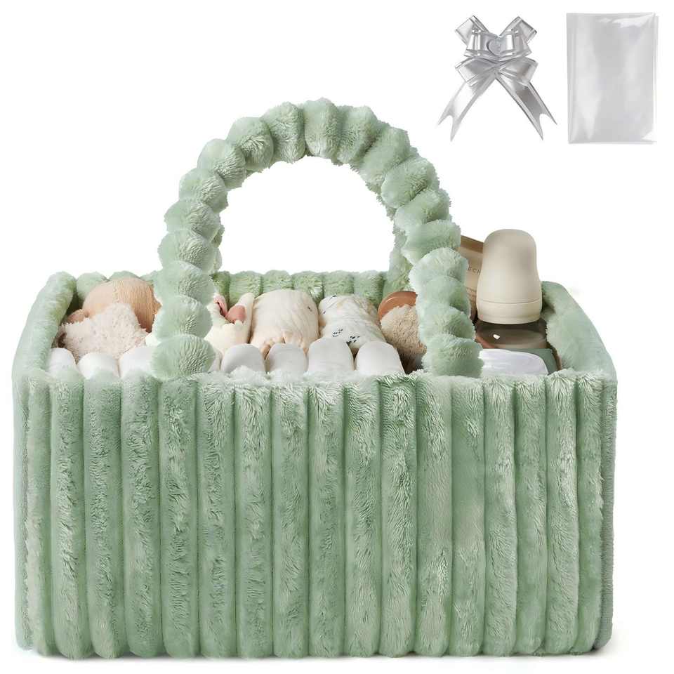 Green Flannel Diaper Caddy Organizer Included Gift Packaging Cozy Nursery Storage Basket