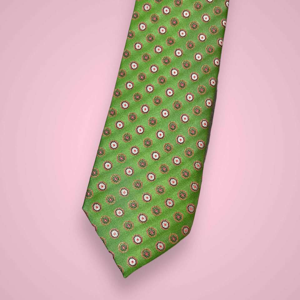 Green Floral Tie with Patterned Flower Design Men's Accessories