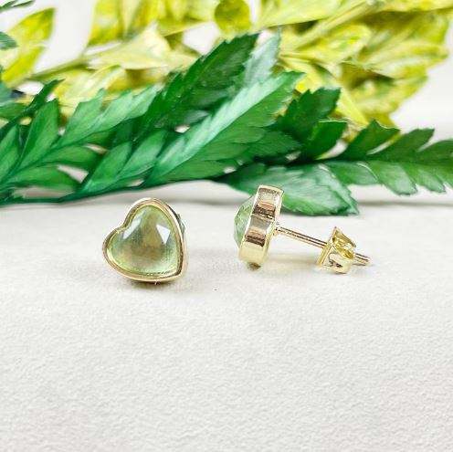 Green Fluorite Gemstone 9mm Heart 925 Sterling Silver Gold Vermeil Bezel Stud Earrings Fashion Earring Wholesale Stud