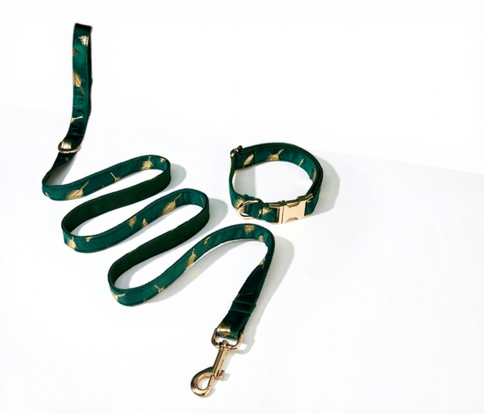 Green Gold Feather Personalized Bow Set Puppy With Name Engraved Custom Boy Dog Collar Dog Collar Bowtie For Wedding Gift