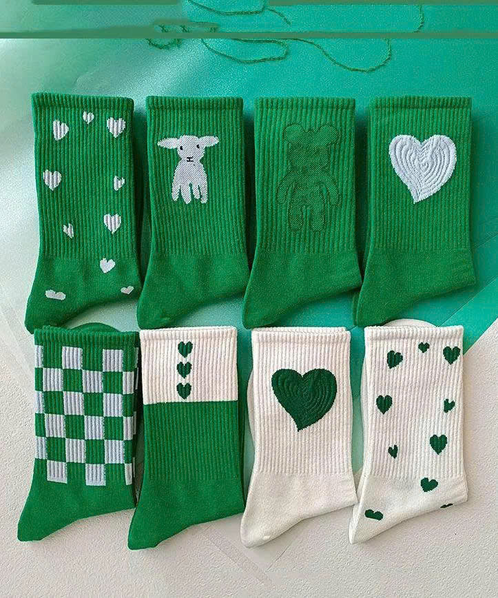 Green Heart Crew Socks Soft Cotton Streetwear Style Cute Love Pattern Trendy Daily Wear Gift Ready High Quality Knit Socks