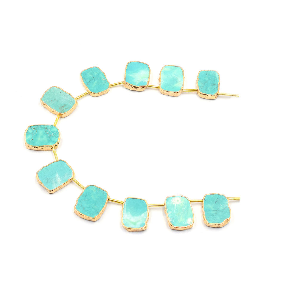 Green Howlite Rectangle Shape Side Drilled Gold Plated 11 Beads Strand