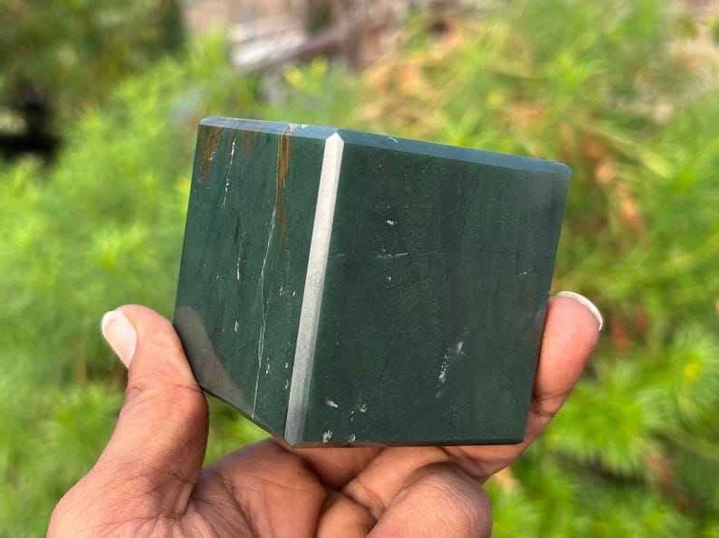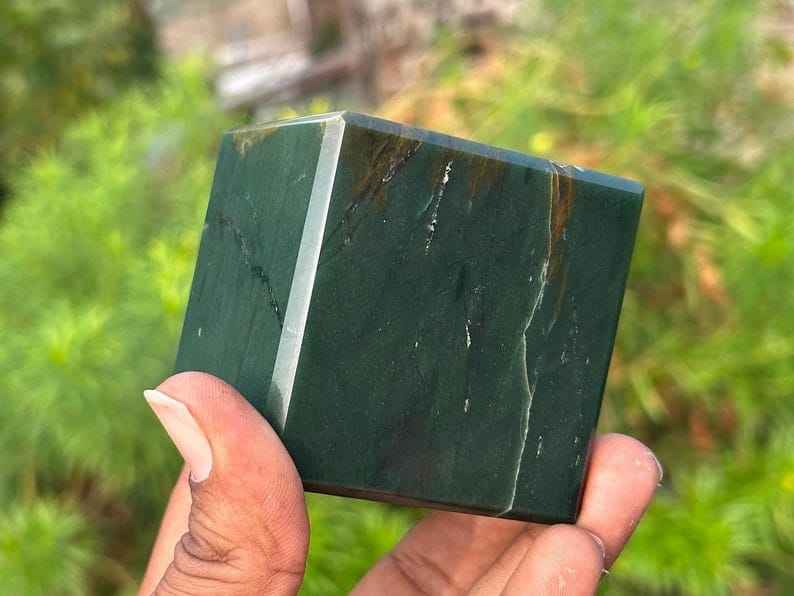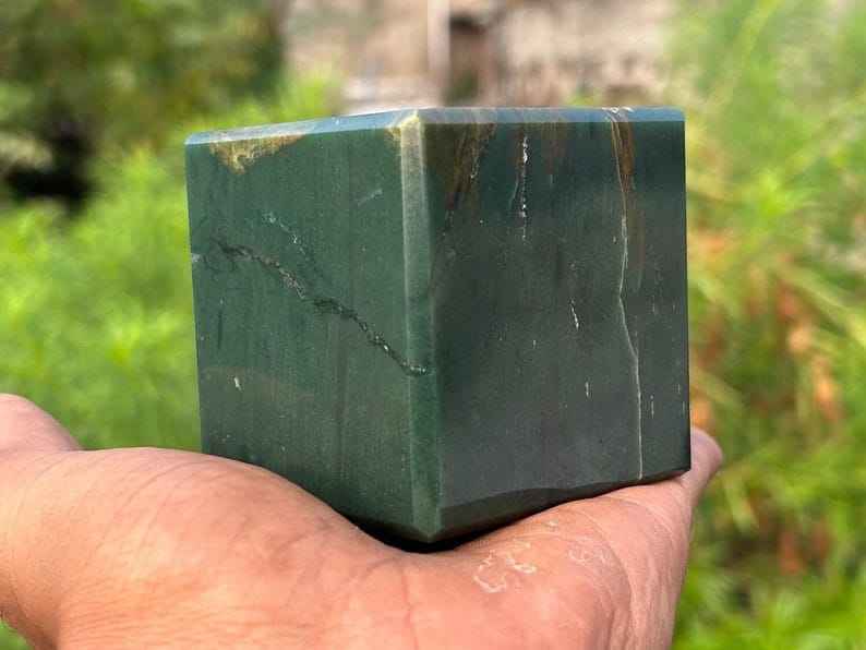 Green Jade Cube Semi Precious Stone Agate Art Piece With Intricate Natural Banding Designed For Modern Interiors
