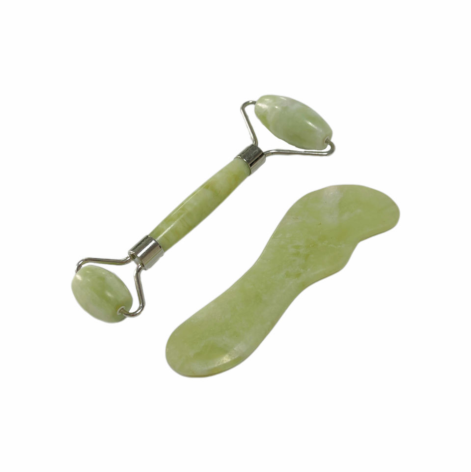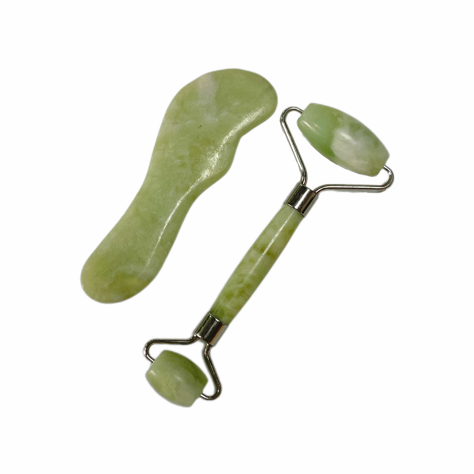 Green Jade Gua Sha Stone Whitening Facial Crystal Guasha Jade Roller Set for Application on Face