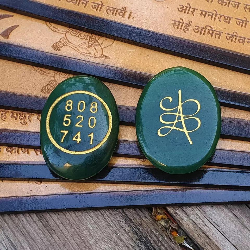 Green Jade Money Switch Word and Zibu Symbol Both Side Carved Coins for Sale Natural Green Jade Oval Carved Feng Shui Tumbled