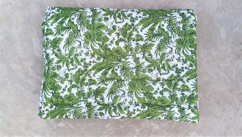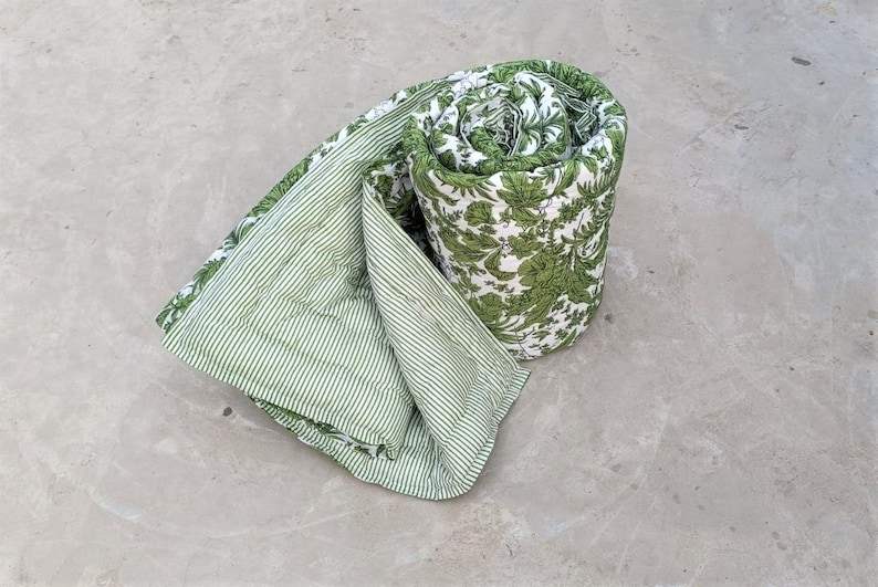 Green Leaf Jaipuri Razai Reversible Organic Cotton Quilted Bedspread