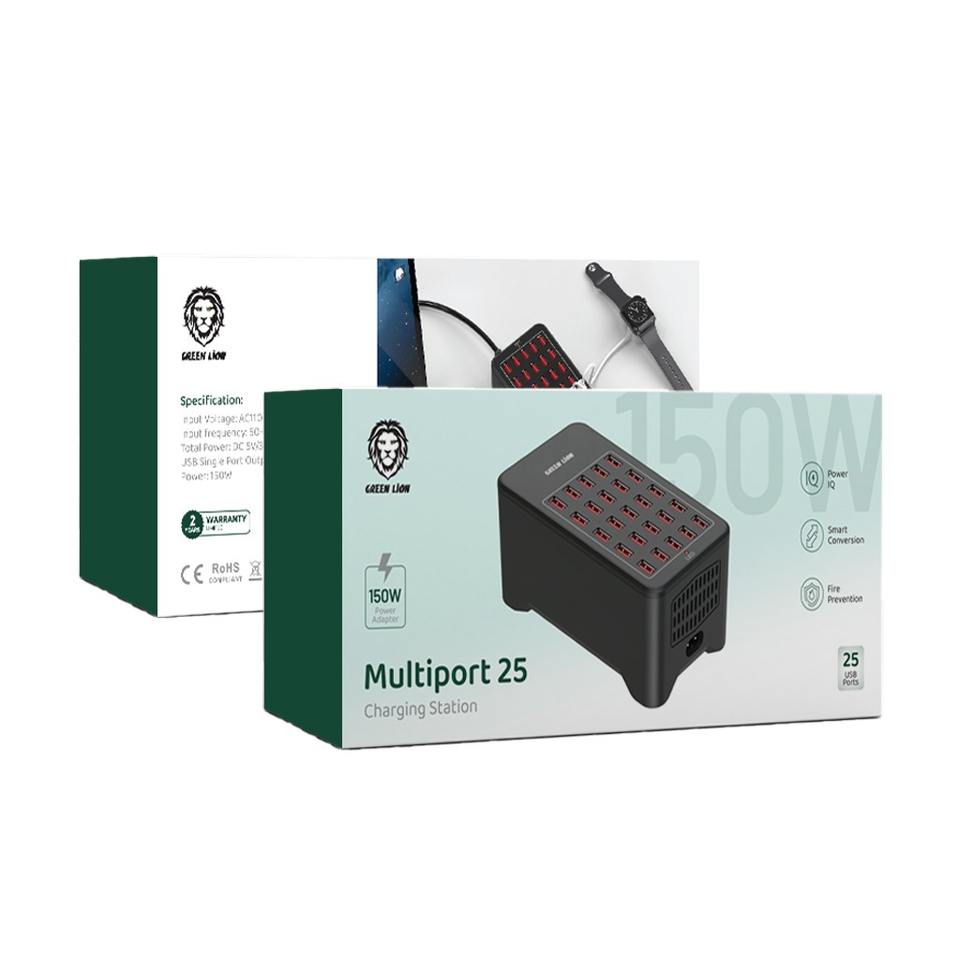Green Lion 25 Port Multiport Charging Station White Wireless Charger Disinfection Phone Mobile Watch 65W Output Power 5A Current