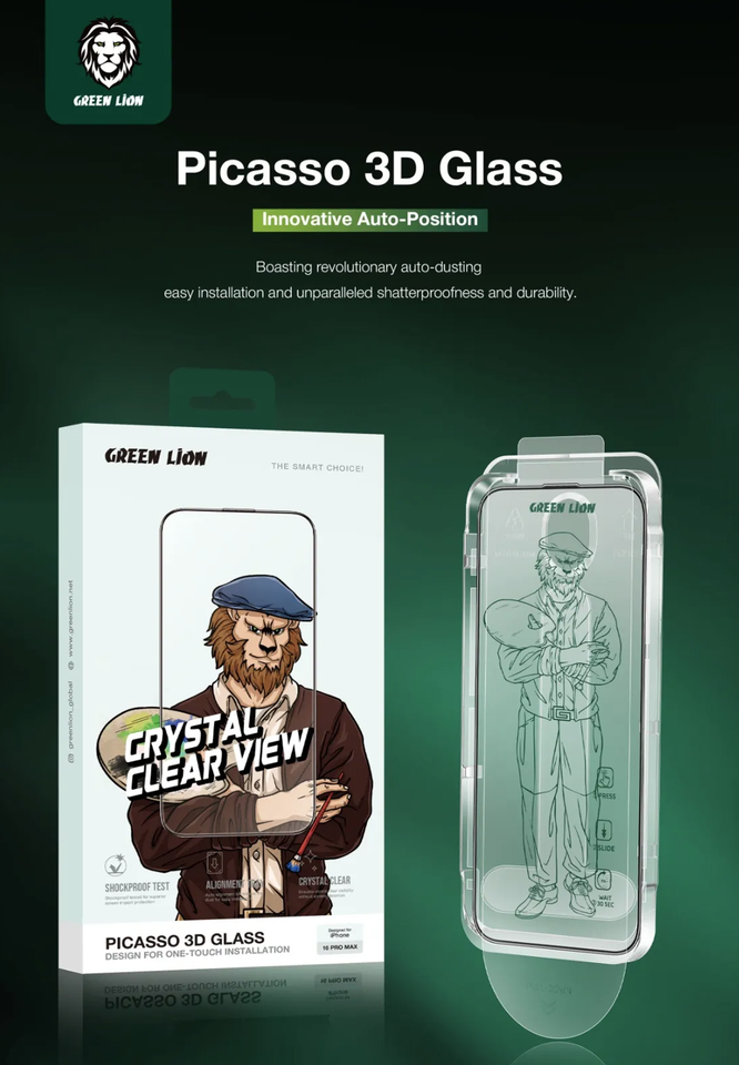 Green Lion Picasso 3D Glass Alignment Tray Phone Compatible Max Pro Max Plus Waterproof Anti-Scratch Screen Protectors