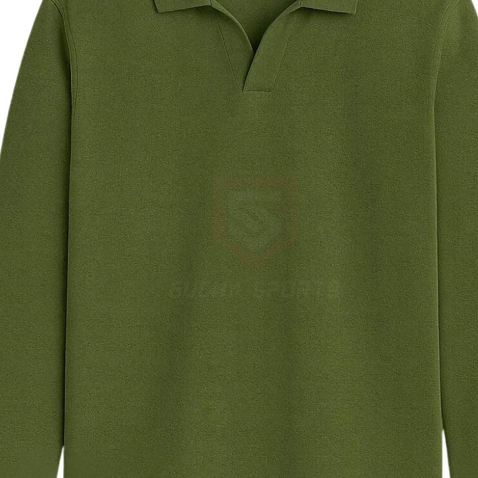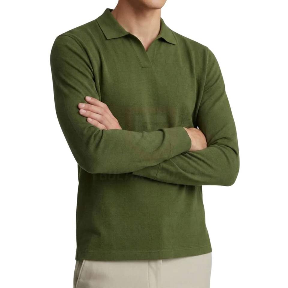 Green Long Sleeve Polo Men Smooth Cotton Knit Casual Basic Essential Shirt Solid Color Breathable Custom Maker Factory